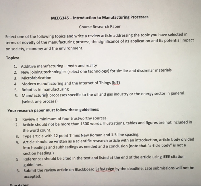 Solved Meeg345 Introduction To Manufacturing Processes Co Chegg Com