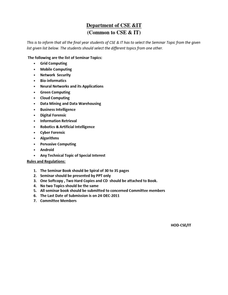 List Of Seminar Topics For Final Year Students