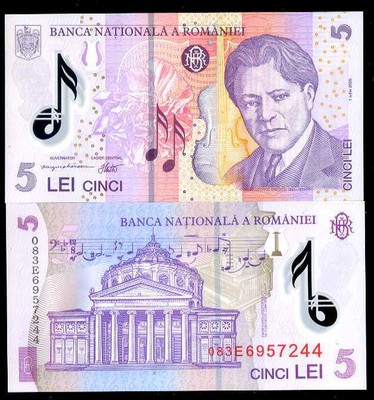2005 2017 Banknote Polymer Romania 5 Lei G Enescu P118h Unc Mynumi