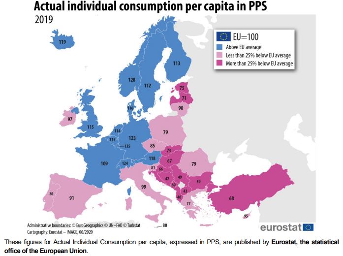 Finfacts Ireland Irish Material Standard Of Living Per Capita Below Eu 27 Average In 2019