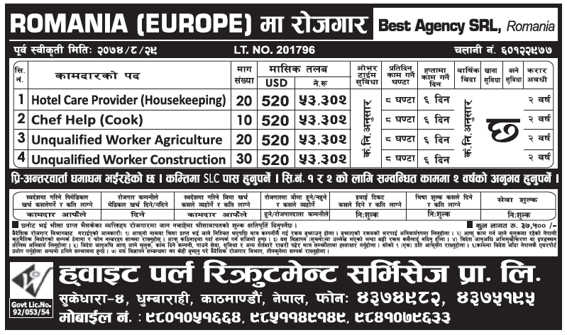 Jobs In Europe Romania For Nepali Salary Up To Rs 54 465