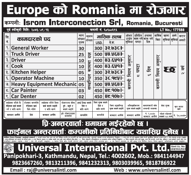 Jobs In Europe Romania For Nepali Salary Up To Rs 54 465