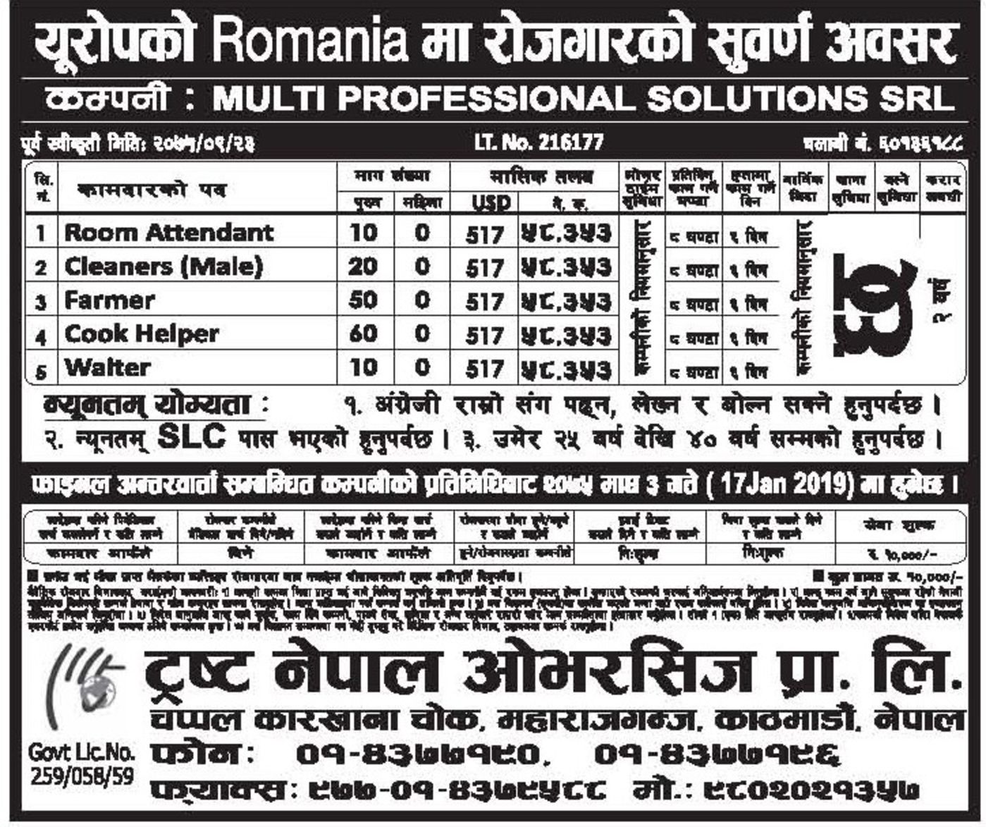 Jobs Nepal Vacancy Labor Multi Professional Solution Srl Europe Romania International Jobs