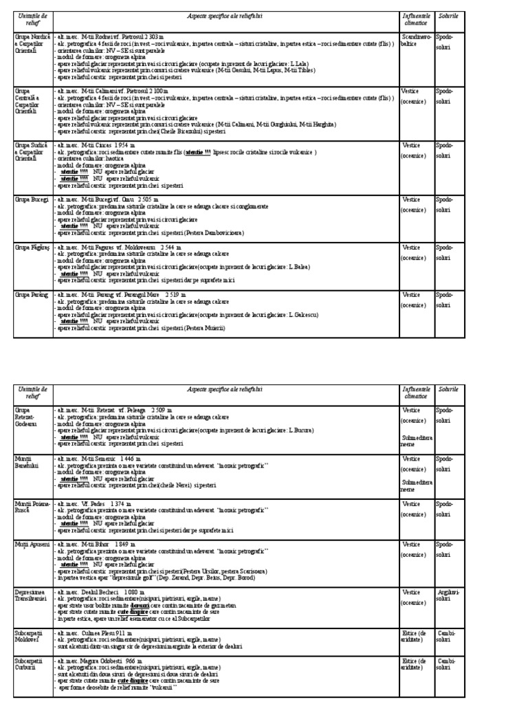 Tabel Relieful Romaniei