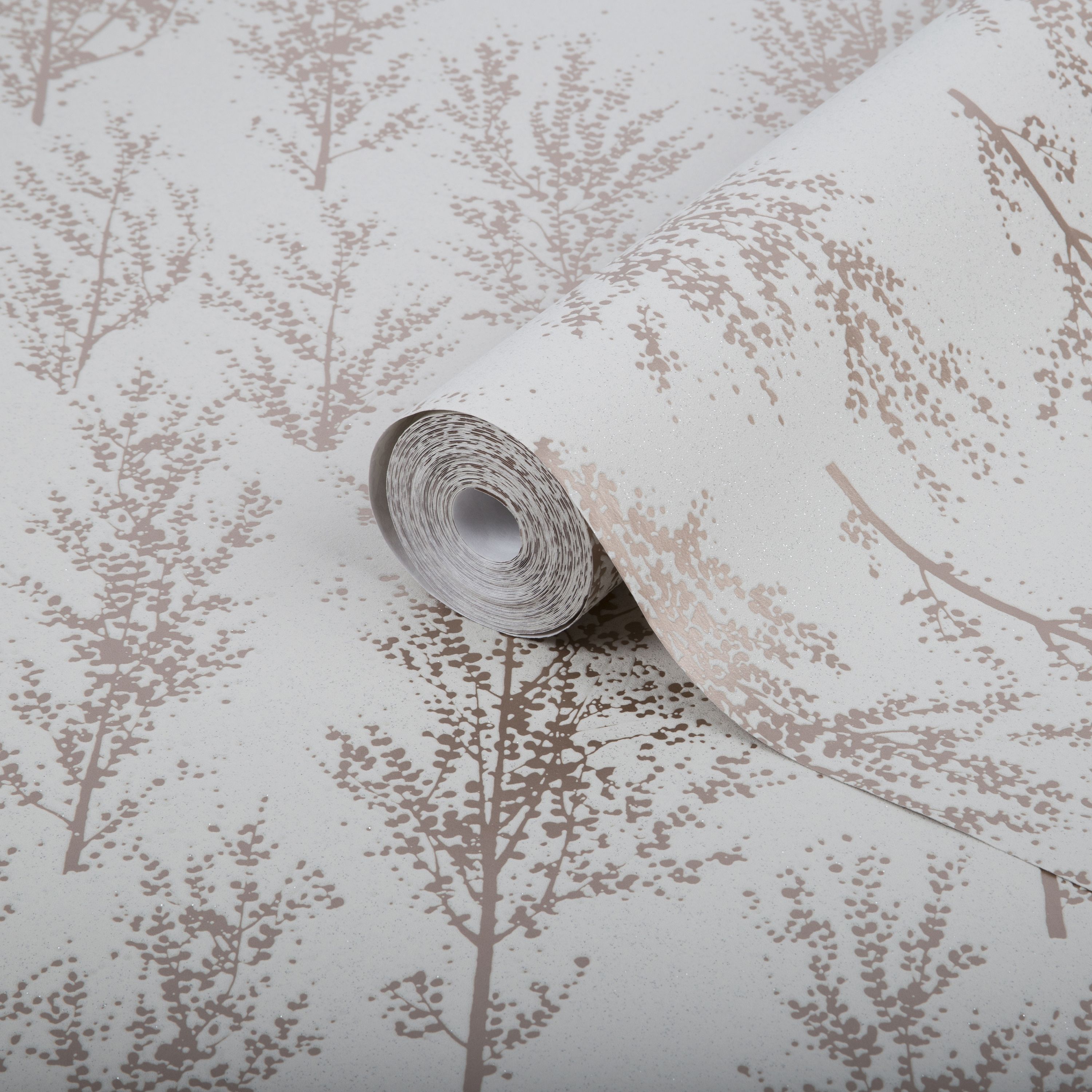 Goodhome Jatoba Beige Tree Rose Gold Glitter Effect Textured Wallpaper Departments Diy At B Q