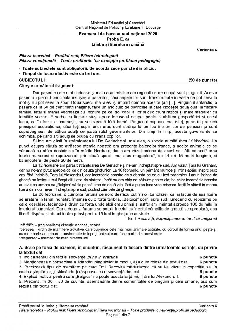 Bac 2020 Subiecte Primite La Limba Si Literatura Romană