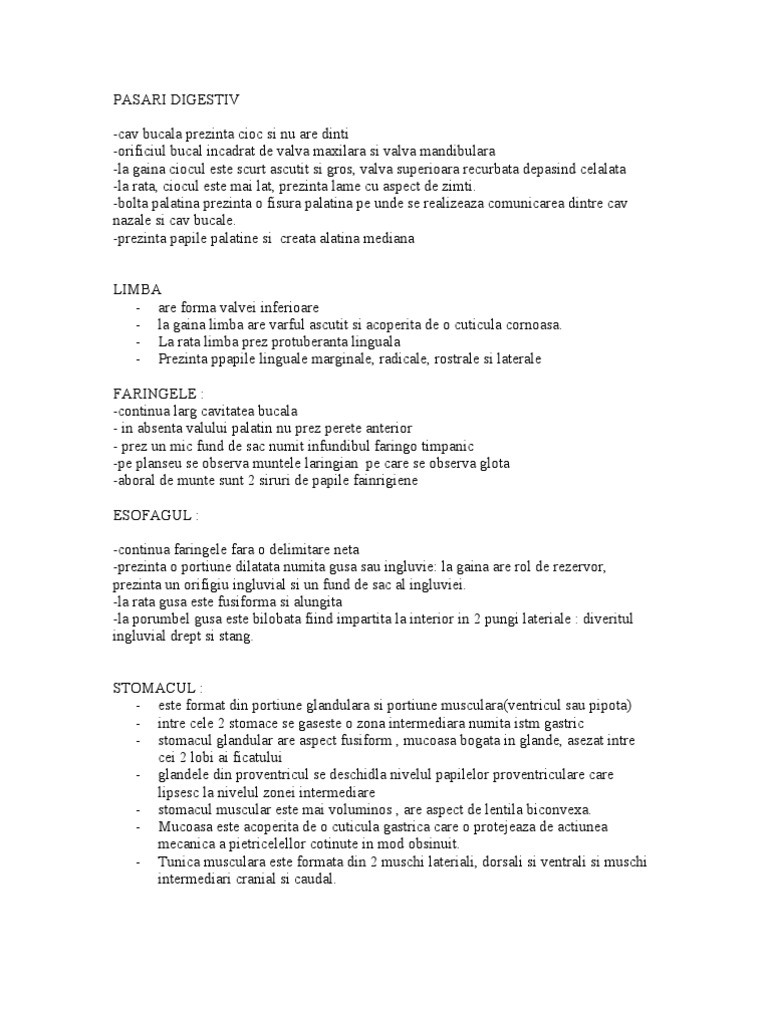 Sistemul Digestiv La Pasari Digestion Gastrointestinal Tract
