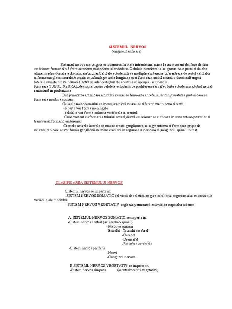 Sistemul Nervos Definitie Clasificare