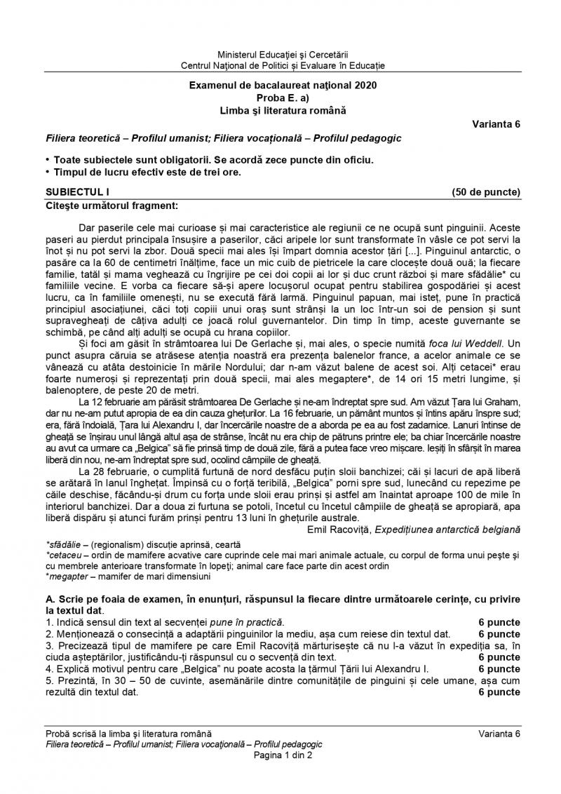 Subiectele De La Proba De Limba Romană Profilul Uman La Sesiunea De Toamnă A Examenului De Bacalaureat 2020 Edupedu