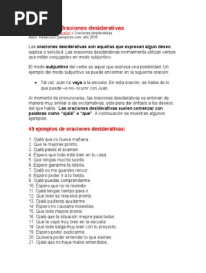 Oraciones Desiderativas Oracion Linguistica Verbo