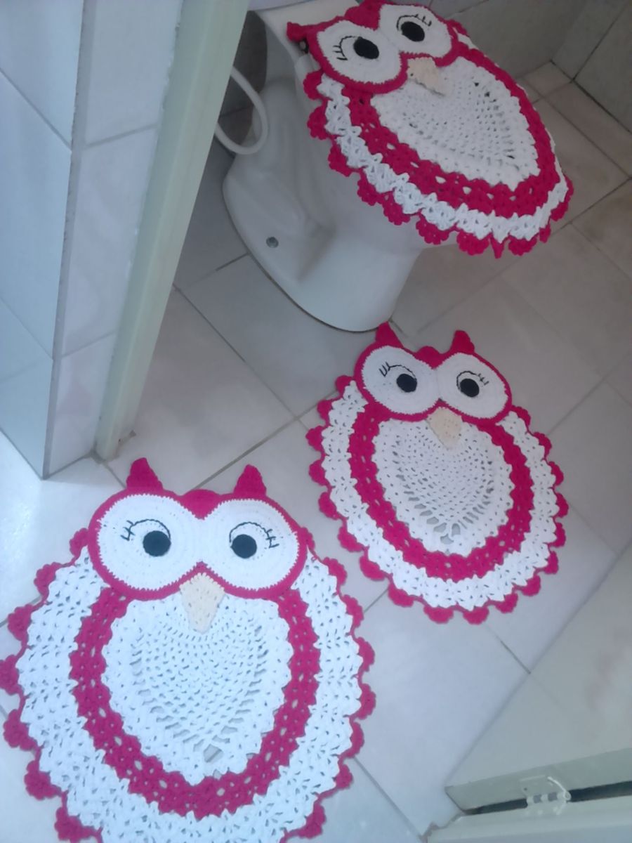 Kit Jogo Banheiro Tapete Coruja Croche 3 Pecas Cacareco Croche Coruja Nunca Usado 21850496 Enjoei